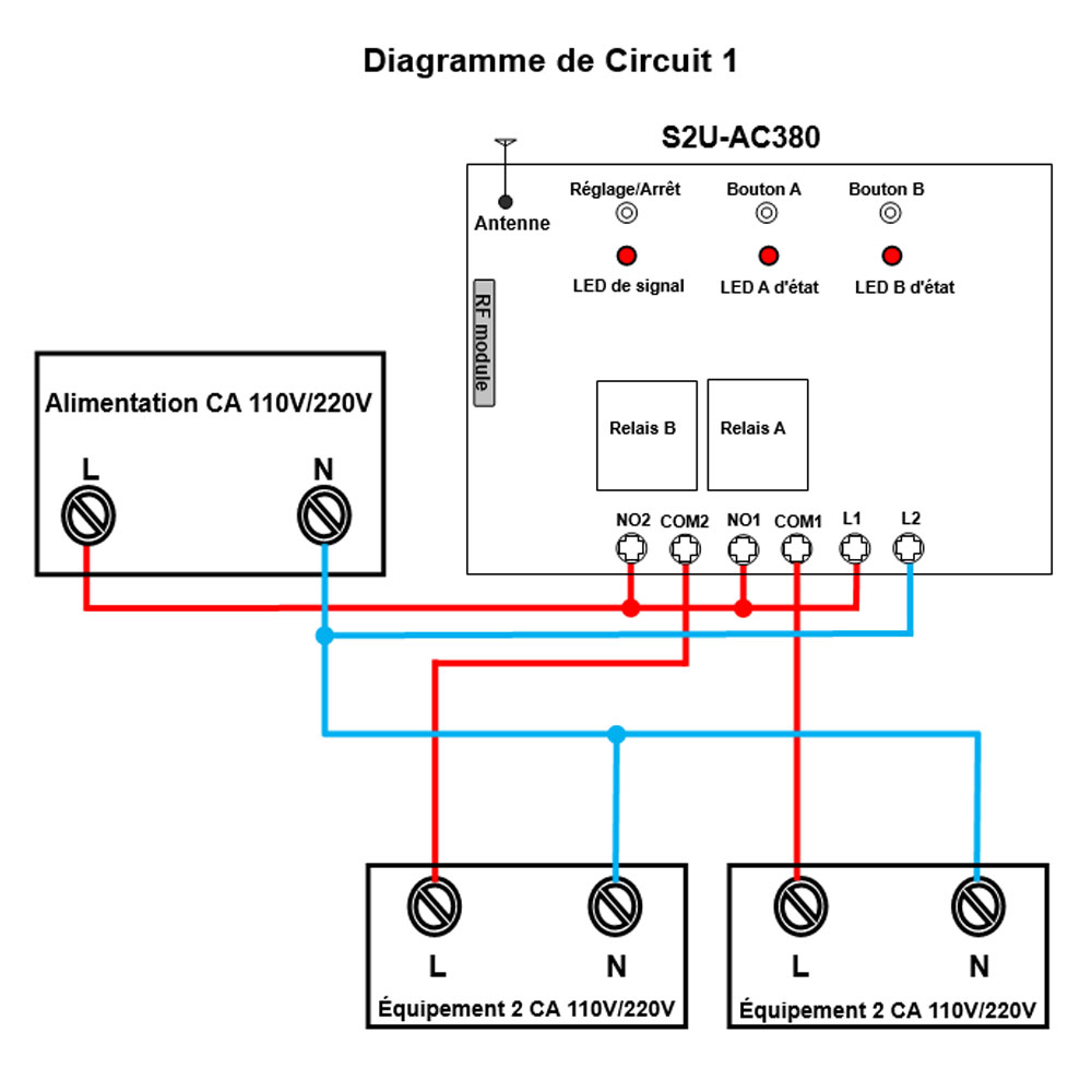 1) Si vous voulez contrôler les équipements en CA 110V ou 220V, vous pouvez