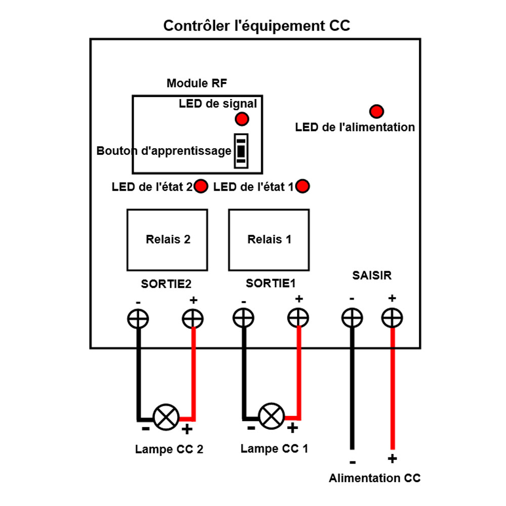 Le récepteur peut être utilisé pour contrôler des équipements CC 6V / 9V /
