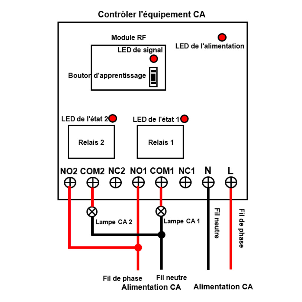 pour contrôler à la fois les équipements CC et AC. Les bornes de sortie sont