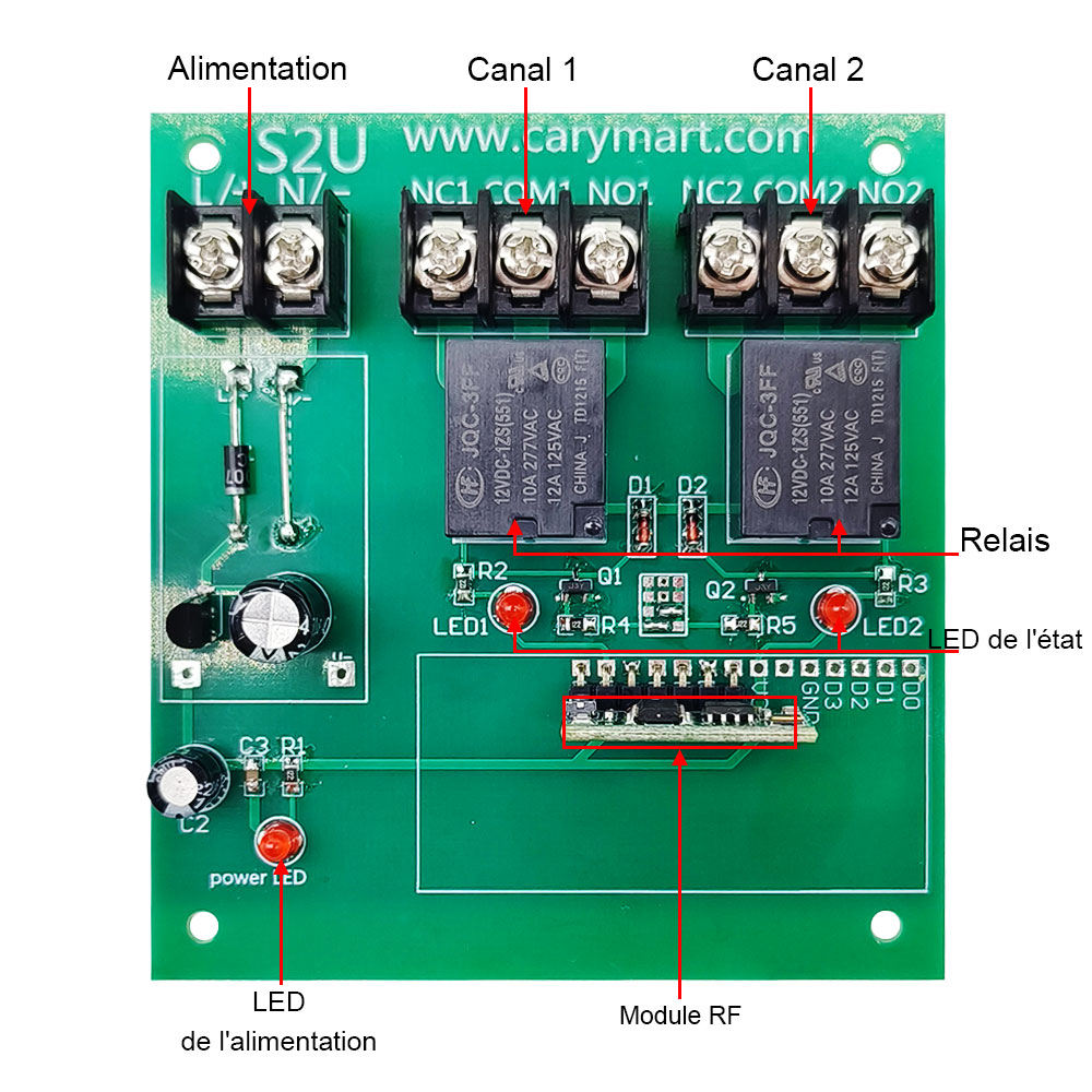 Sortie Relais : Ce récepteur est le sortie relais sec, il peut être utilisé