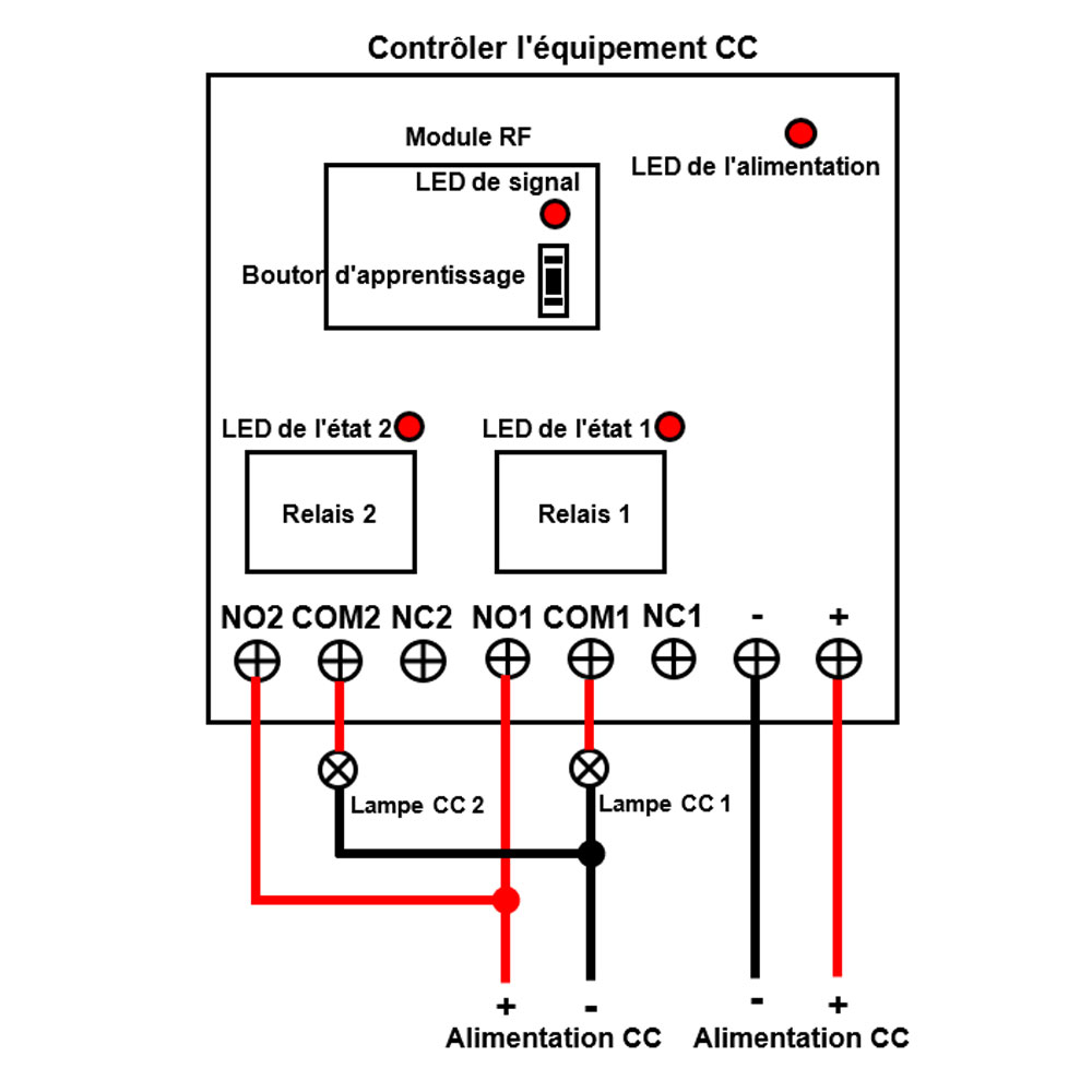 Le récepteur peut être utilisé pour contrôler des équipements DC 0 ~ 28V et