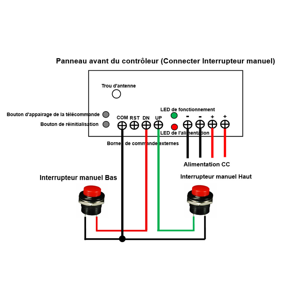 course aux bornes UP et COM sur le contrôleur, connectez deux bornes