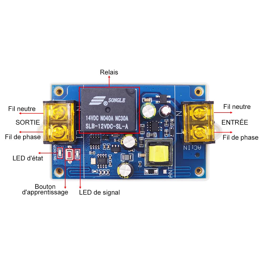 Fréquence de travail: 433.92MHz (315 MHz personnalisable)