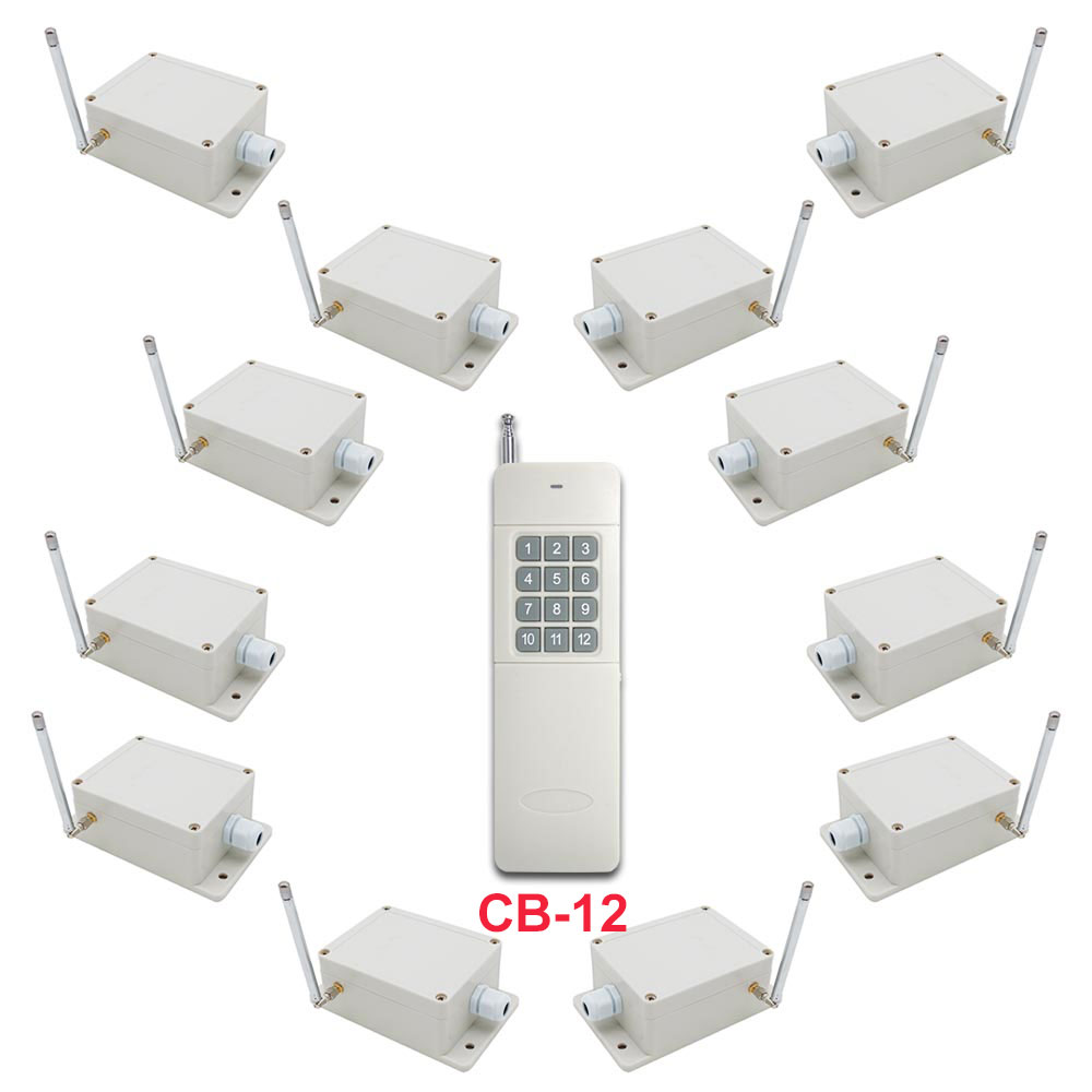 un émetteur à 12 boutons pour contrôler 12 récepteurs. L'émetteur et le
